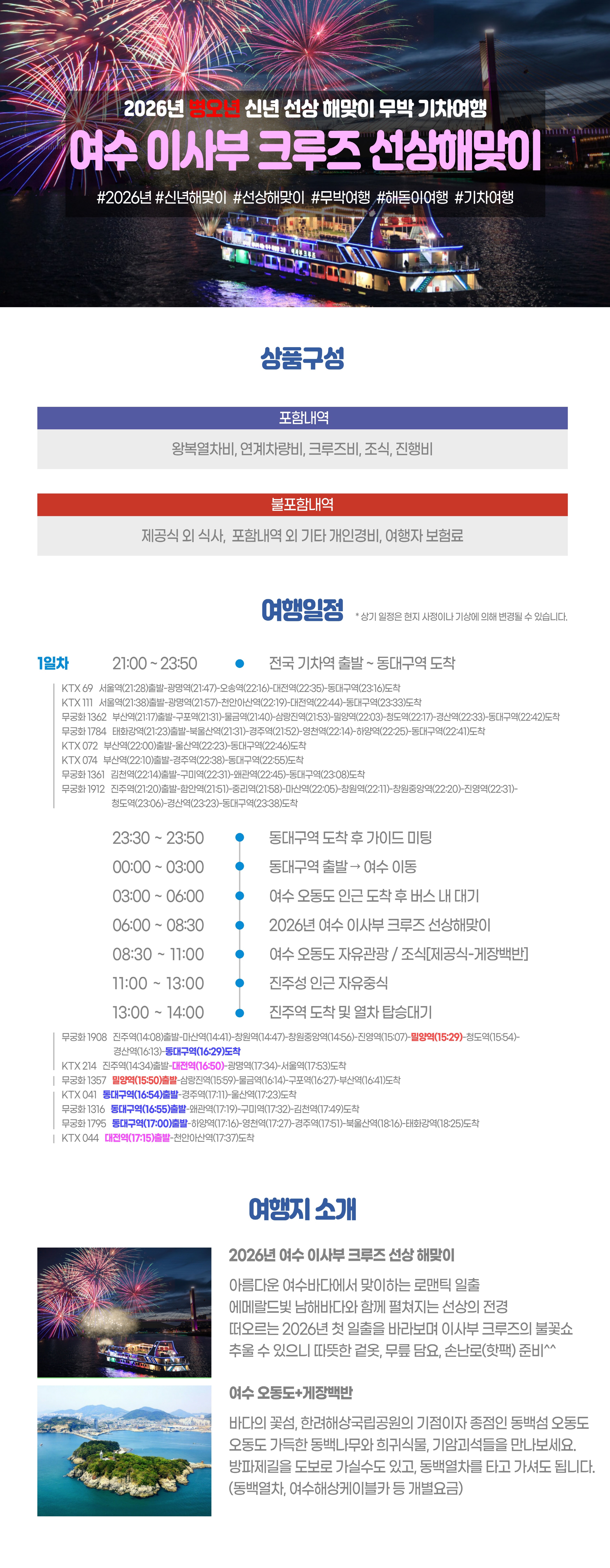 | 여행코스 | 동대구역-휴게소 경유-여수 이사부크루즈-여수 오동도-진주역 |