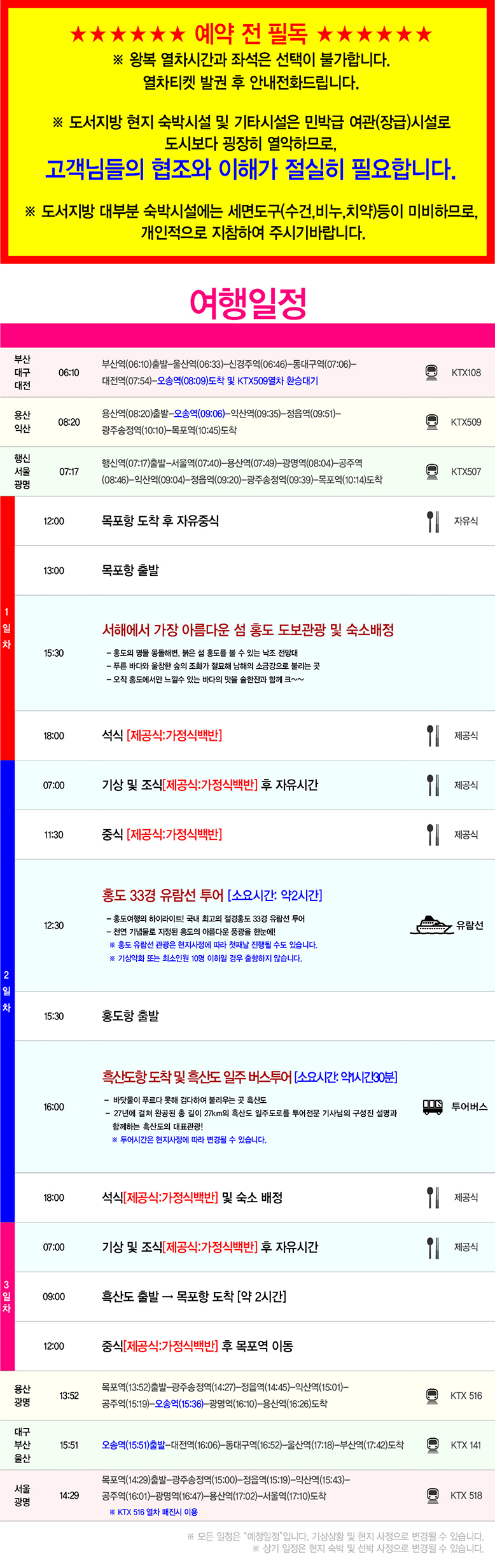 | 여행코스 | 목포역-목포항-홍도-흑산도-목포항-목포역 |
