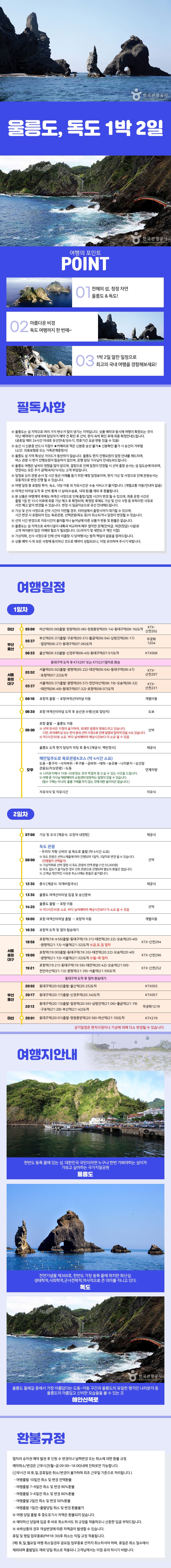 | 여행코스 | 포항역-포항여객터미널-울릉도-해안일주육로관광A-독도-울릉도-포항역 |