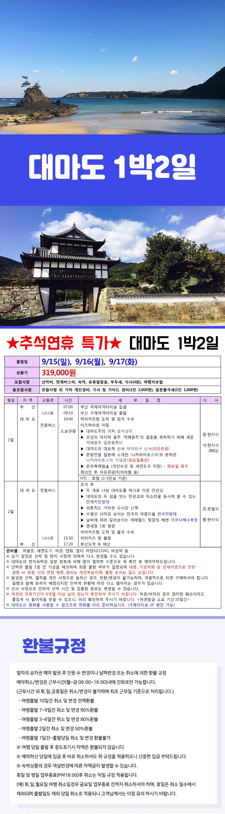여행출발 1일전~출발당일 취소 및 변경 환불불가
