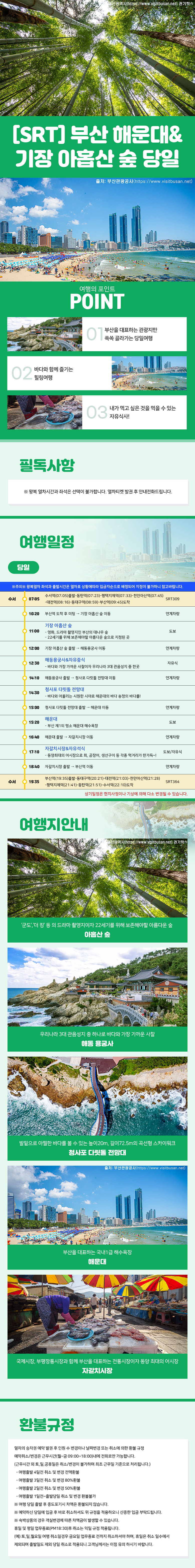 | 여행코스 | 부산역-아홉산 숲-해동용궁사-청사포 다릿돌전망대-해운대-자갈치시장-부산역 |