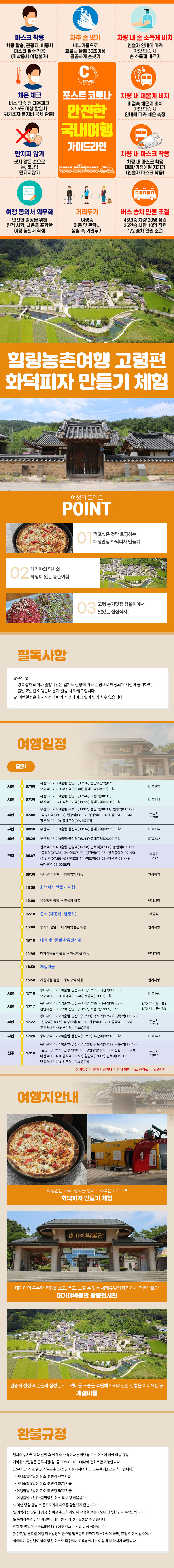 | 여행코스 | 동대구역-화덕피자만들기체험-대가야박물관-개실마을-동대구역 |