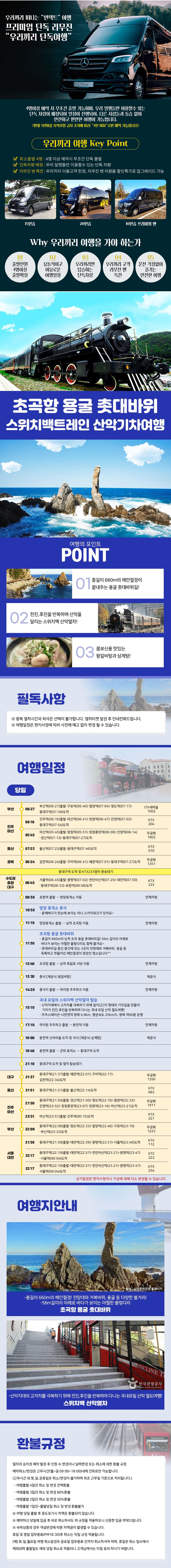 | 여행코스 | 포항역-망양휴게소-초곡항 용굴 촛대바위-하이원 추추파크-분천역-동대구역 |