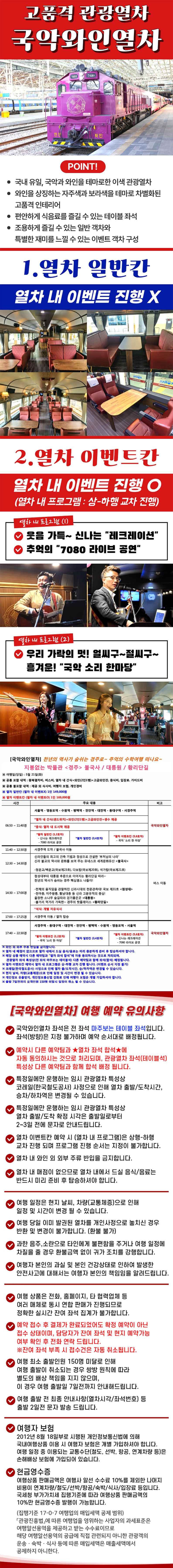 열차상품의 출발역과 시간 및 요금은 철도청의 열차상황에 따라 변경 또는 취소 될 수도 있습니다.