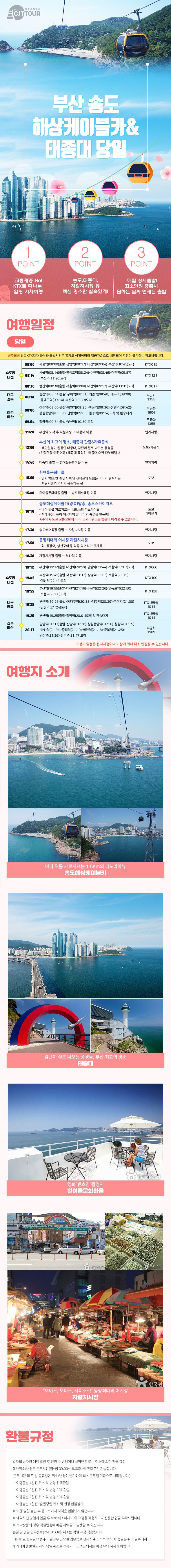 | 여행코스 | 부산역-태종대-흰여울문화마을-송도해상케이블카-자갈치시장-부산역 |