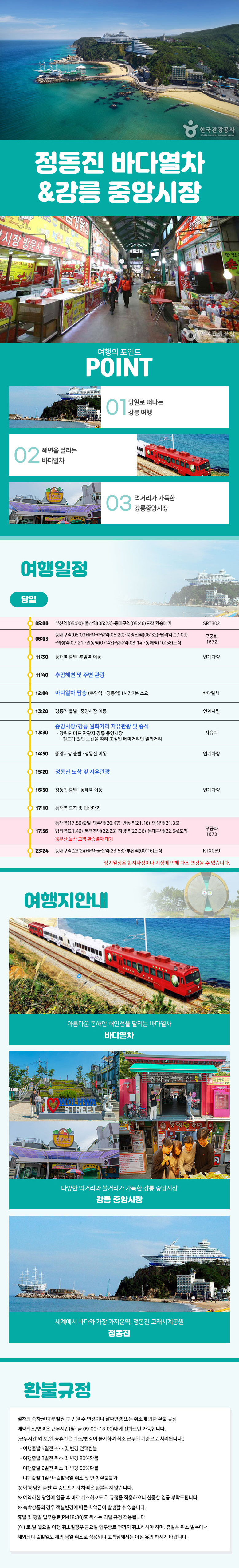 | 여행코스 | 동해역-추암역-바다열차-강릉역-중앙시장-정동진-동해역 |