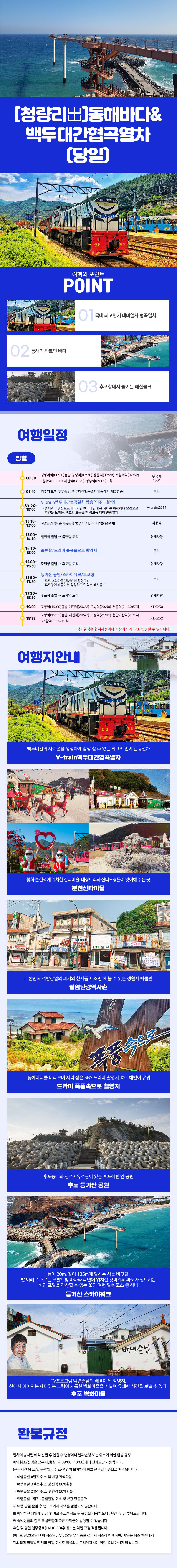 | 여행코스 | 영주역-V-train백두대간협곡열차-철암탄광역사촌-죽변항/드라마 폭풍속으로 촬영지-등기산공원/스카이워크/후포항-포항역 |