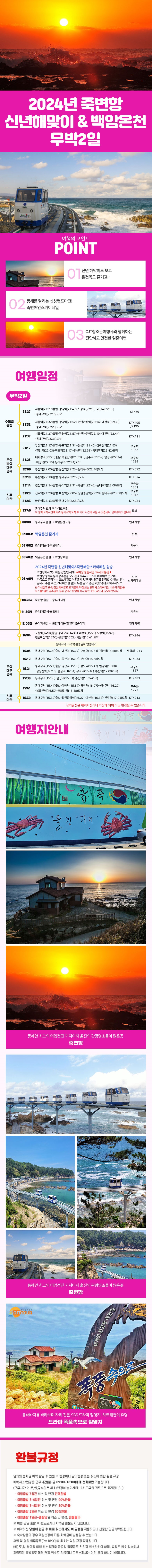 | 여행코스 | 동대구역-백암온천-죽변항-죽변해안스카이레일-포항역 |