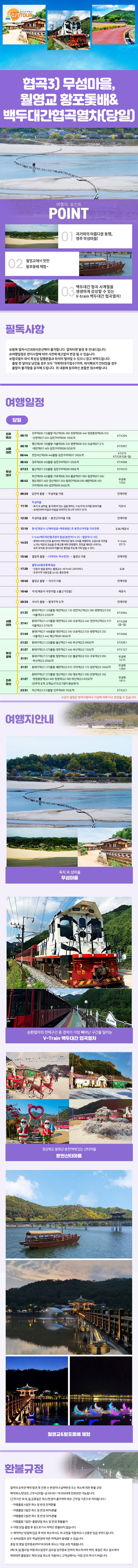 | 여행코스 | 김천역-무섬마을-백두대간협곡열차-다덕약수-월영교-황포돛배-동대구역 |
