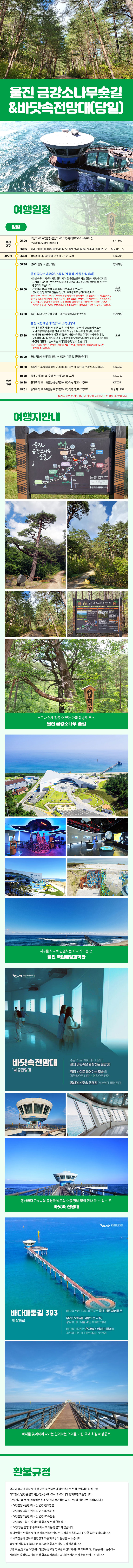 | 여행코스 | 영주역-울진 금강소나무숲길/중식-울진 국립해양과학관/바닷속 전망대-포항역 |