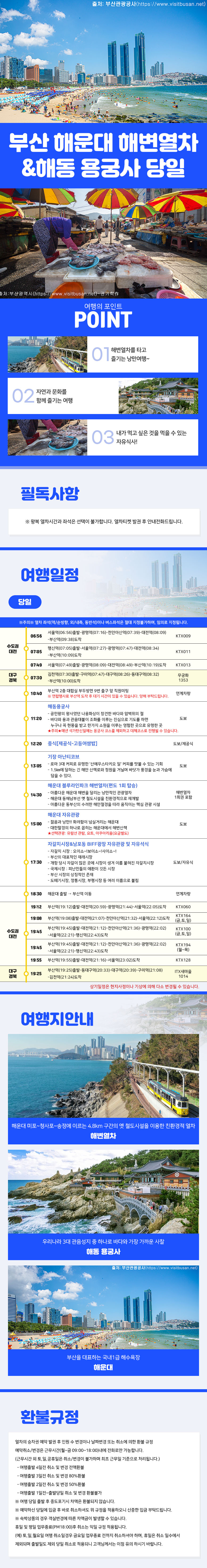 | 여행코스 | 부산역-해동용궁사-중식-아난티코브-해변열차-해운대-부산역 |