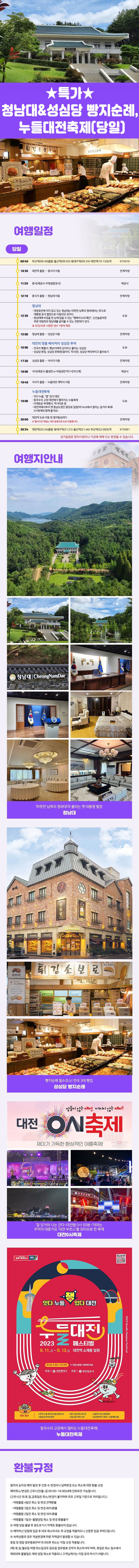 | 여행코스 | 대전역-중식-청남대-성심당-석식-누들대전축제-대전역 |