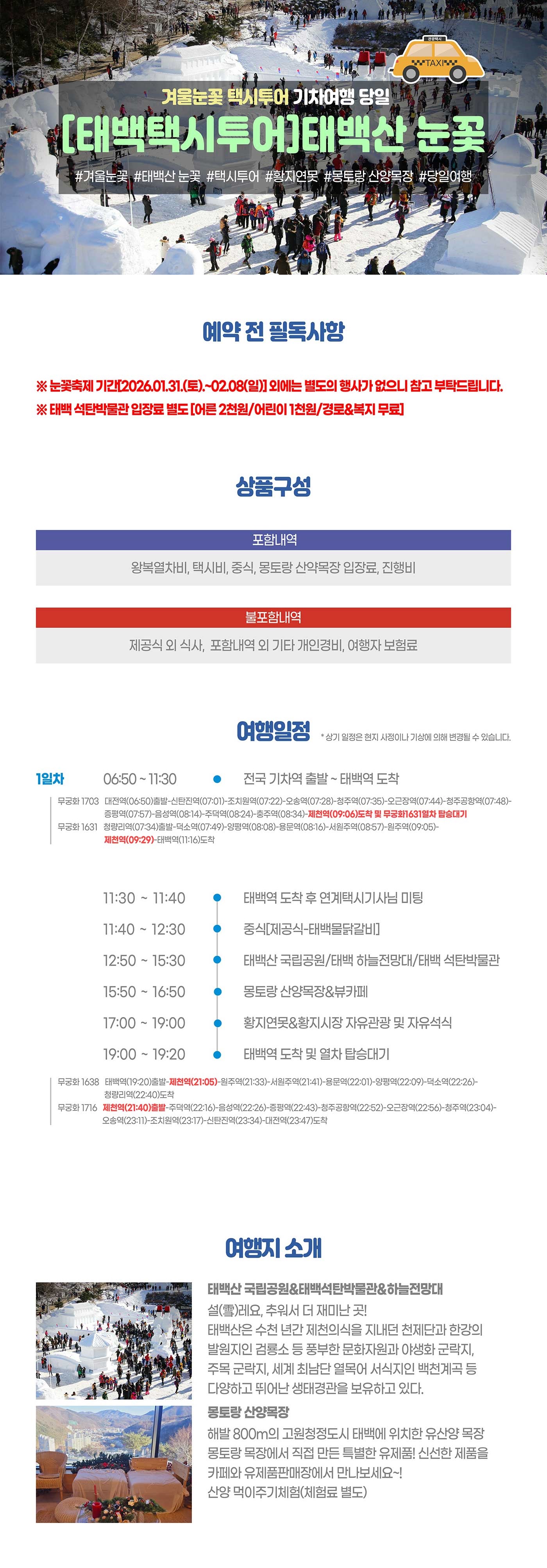 ★겨울눈꽃★[태백택시투어]태백산 눈꽃&황지연못(당일)