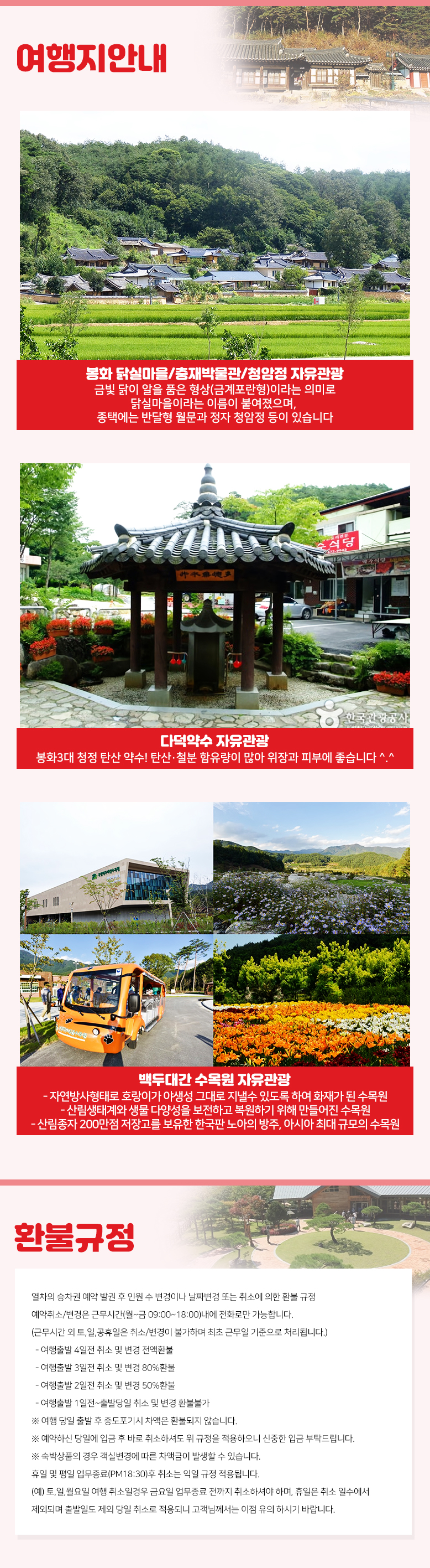 | 여행코스 | 봉화 닭실마을-다덕약수-백두대간수목원 |