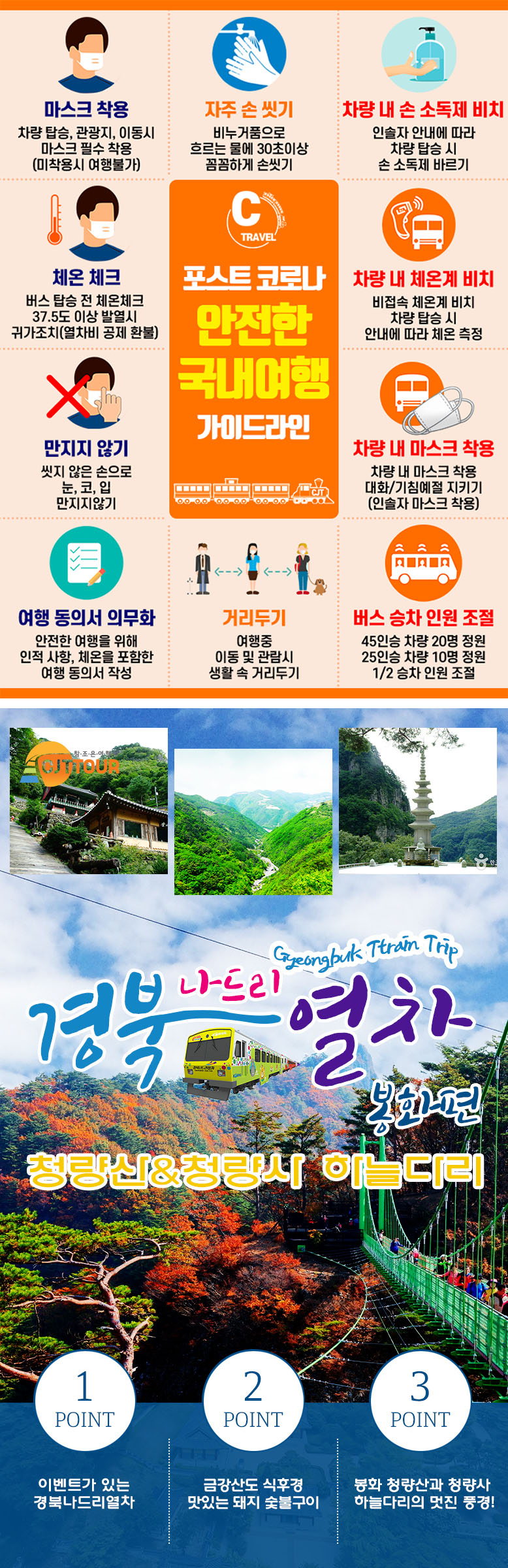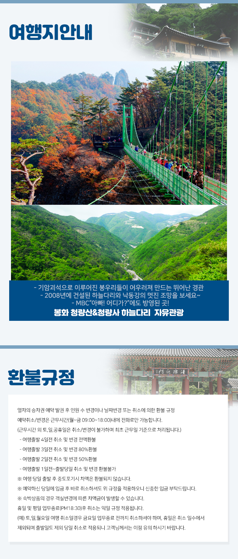 | 여행코스 | 예천역-중식지-청량산 도립공원&하늘다리-영주역 |