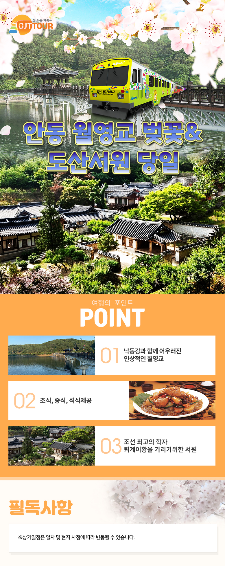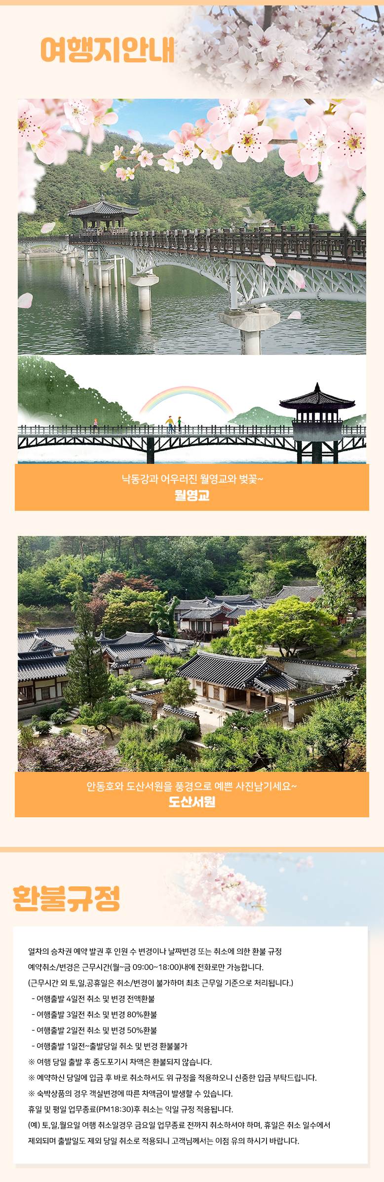 | 여행코스 | 예천역-중식-월영교-안동시립민속박물관-도산서원-예천역 |