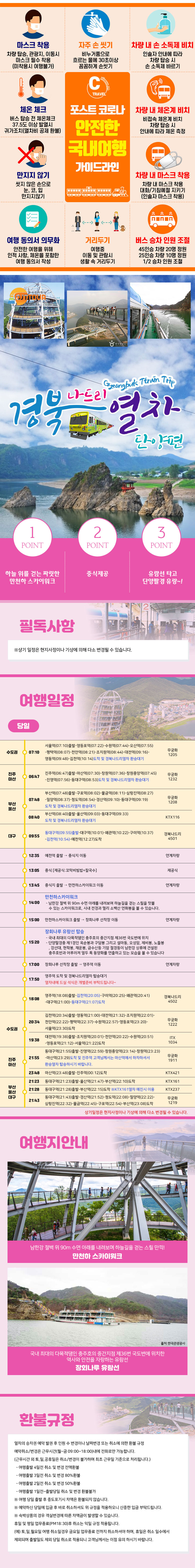 | 여행코스 | 예천역-만천하 스카이워크-장회나루 유람선-영주역 |