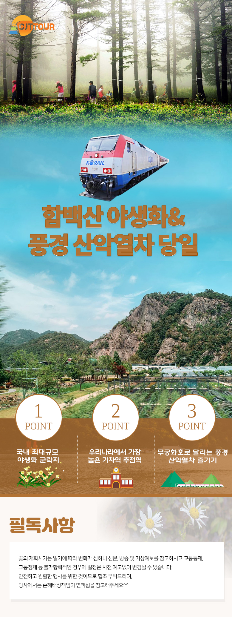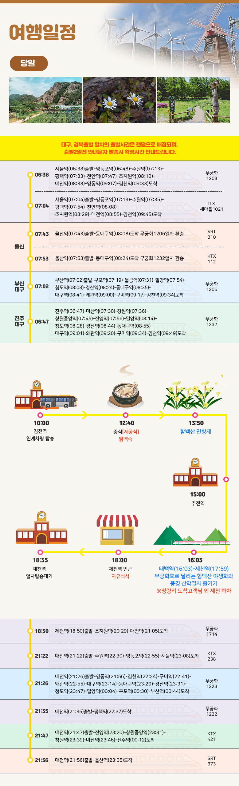 상기 일정은 열차나 천재지변 또는 현지 사정 및 도로교통 상황에 따라 변동될 수 있습니다.