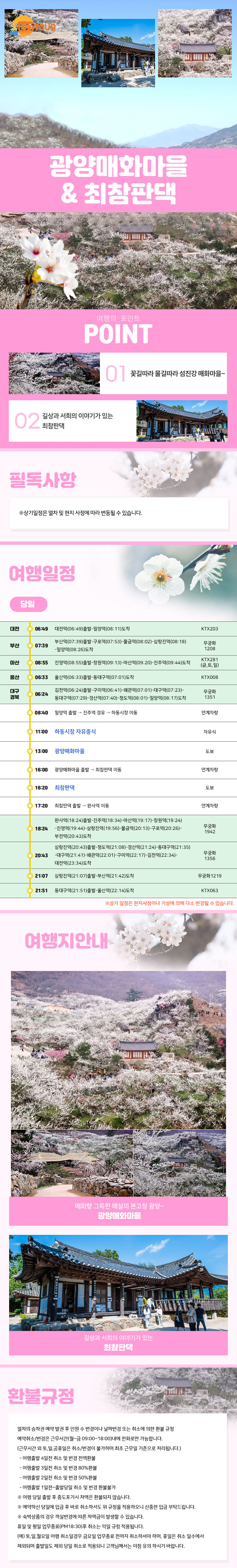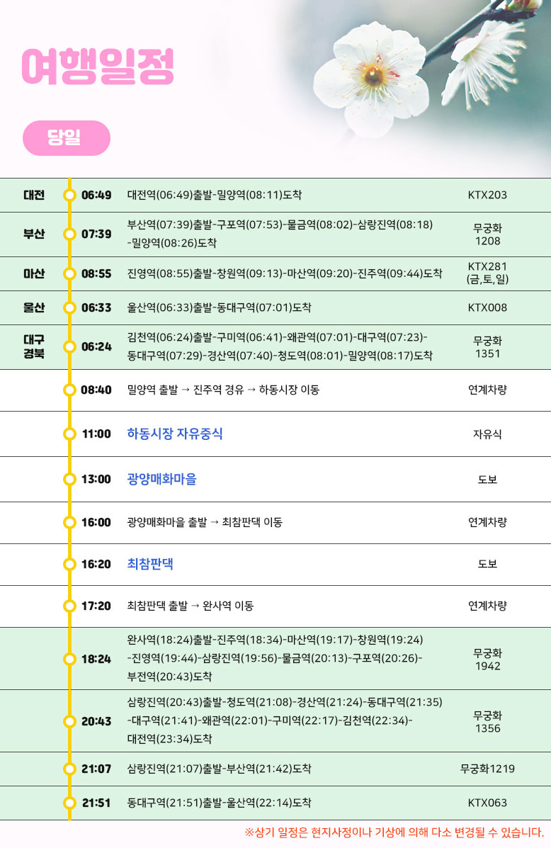 | 여행코스 | 밀양역-하동시장-광양매화마을-최참판댁-완사역 |