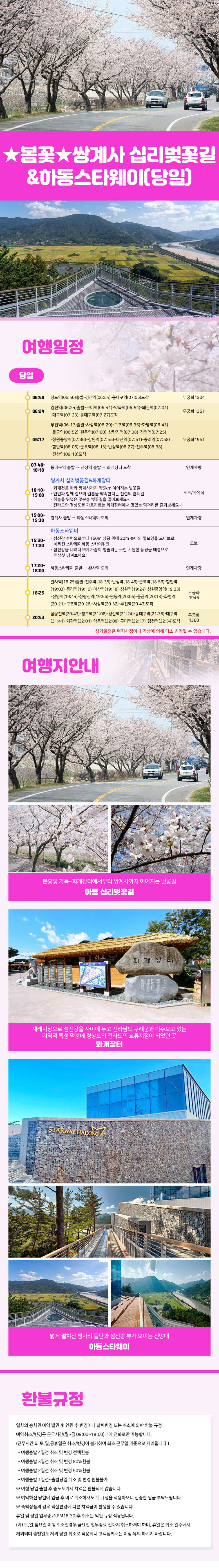 | 여행코스 | 동대구역-진상역-쌍계사 심리벚꽃길&화개장터-하동스타웨이-완사역 |