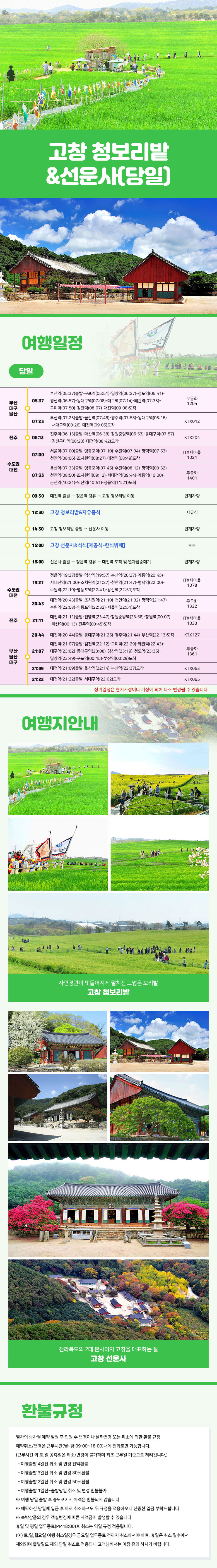 | 여행코스 | 대전역-고창 청보리밭-선운사-대전역 |
