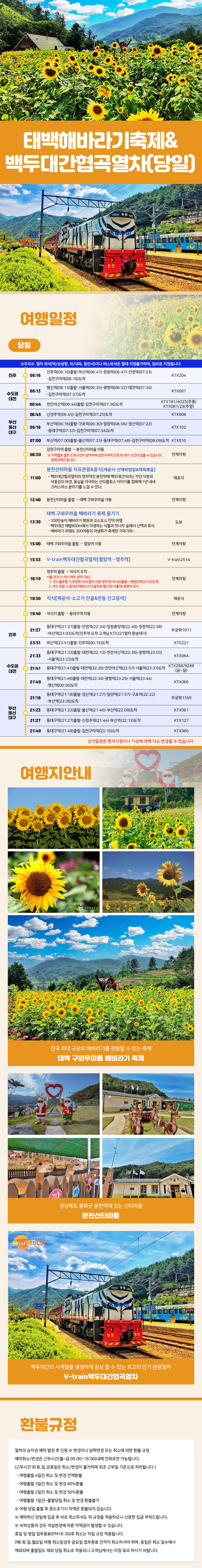 | 여행코스 | 김천구미역-분천산타마을-태백 구와우마을 해바라기축제-영주역-동대구역 |