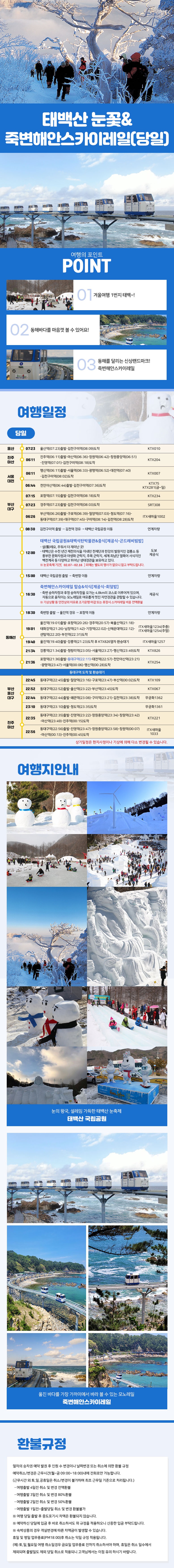 | 여행코스 | 김천구미역-김천역-태백산 국립공원-죽변해안스카이레일-포항역 |