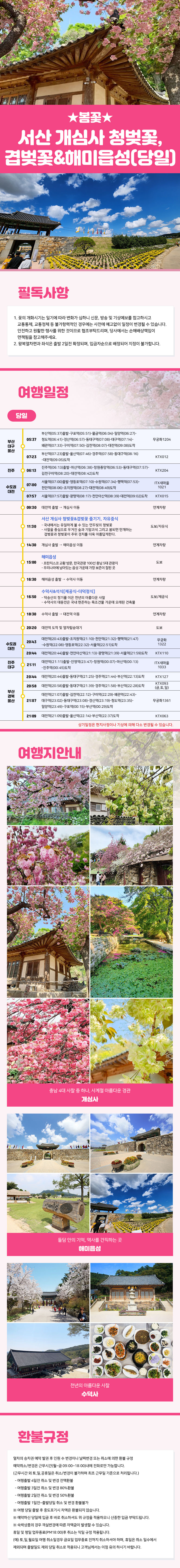 | 여행코스 | 대전역-개심사-해미읍성-수덕사-대전역 |