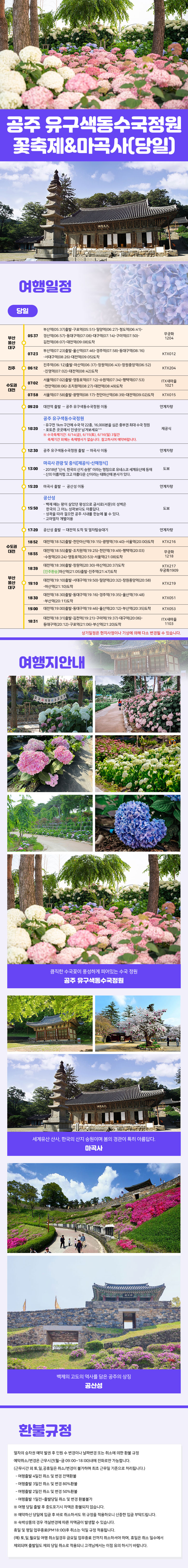 | 여행코스 | 대전역-공주유구색동수국정원-마곡사-대전역 |