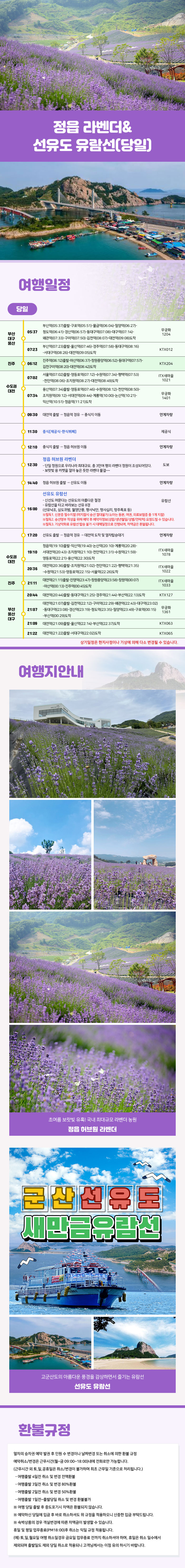 | 여행코스 | 대전역-중식-정읍 허브원 라벤더-선유도 유람선-대전역 |