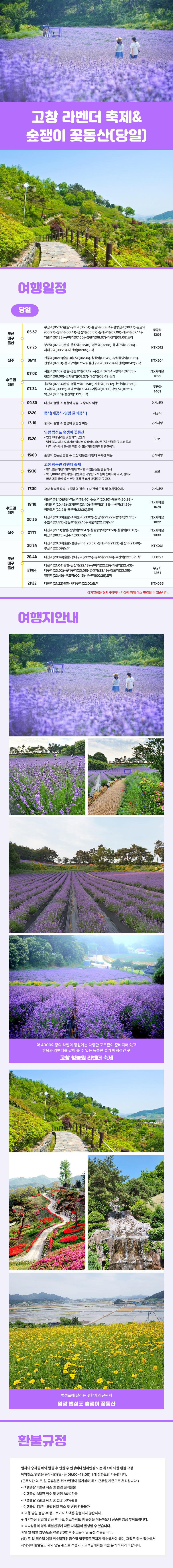 여행코스 대전역-정읍역-중식-법성포 숲쟁이 꽃동산-고창 청농원 라벤더-정읍역-대전역