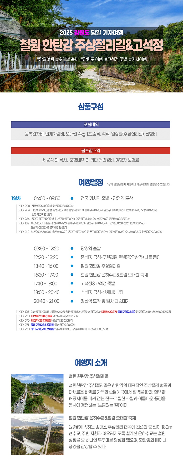 여행코스 광명역-중식-한탄강 주상절리길-한탄강 은하수교-고석정-석식-행신역