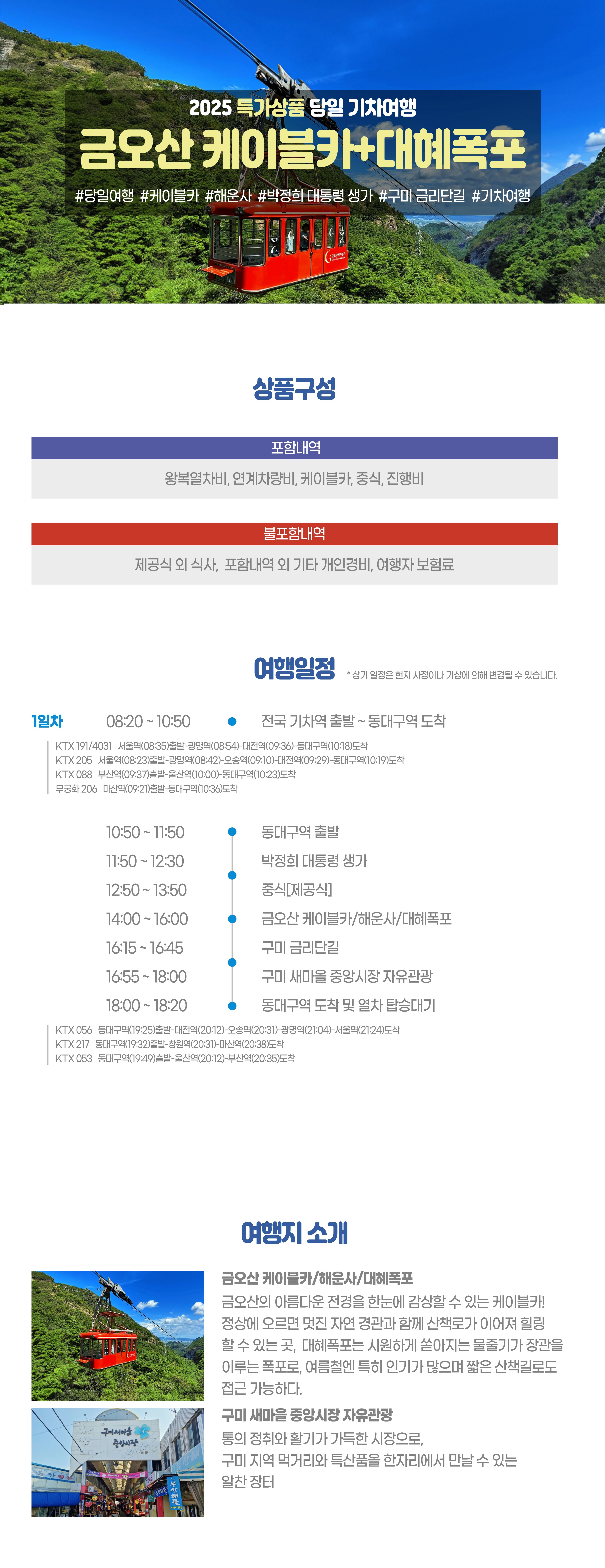 열차상품의 출발역과 시간 및 요금은 철도청의 열차상황에 따라 변경 또는 취소 될 수도 있습니다.
