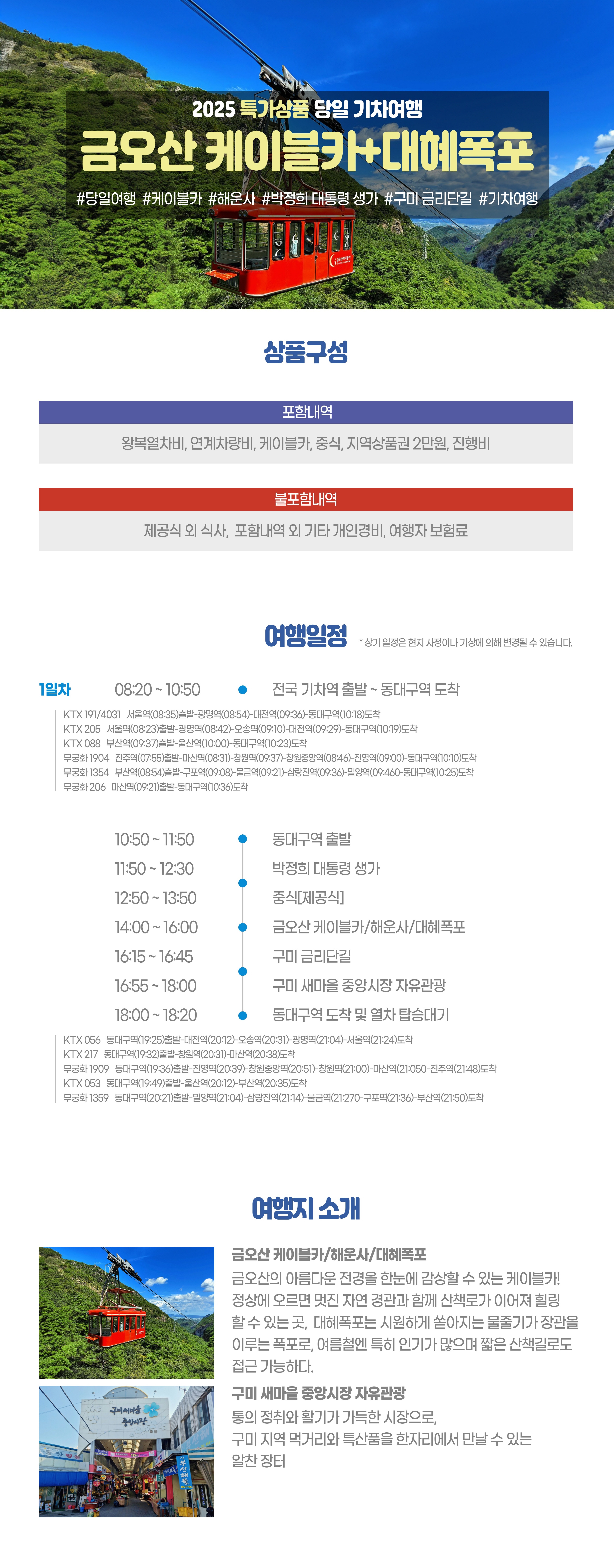 상기 일정은 열차나 천재지변 또는 현지 사정 및 도로교통 상황에 따라 변동될 수 있습니다.